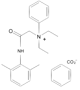 InChI=1/C21H28N2O.C7H6O2/c1-5-23(6-2,15-19-13-8-7-9-14-19)16-20(24)22-21-17(3)11-10-12-18(21)4;8-7(9)6-4-2-1-3-5-6/h7-14H,5-6,15-16H2,1-4H3;1-5H,(H,8,9)/fC21H29N2O.C7H5O2/h22H;/q+1;-1