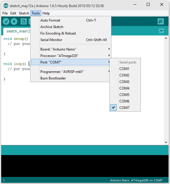 Next, we tell it which port our Nano is on: